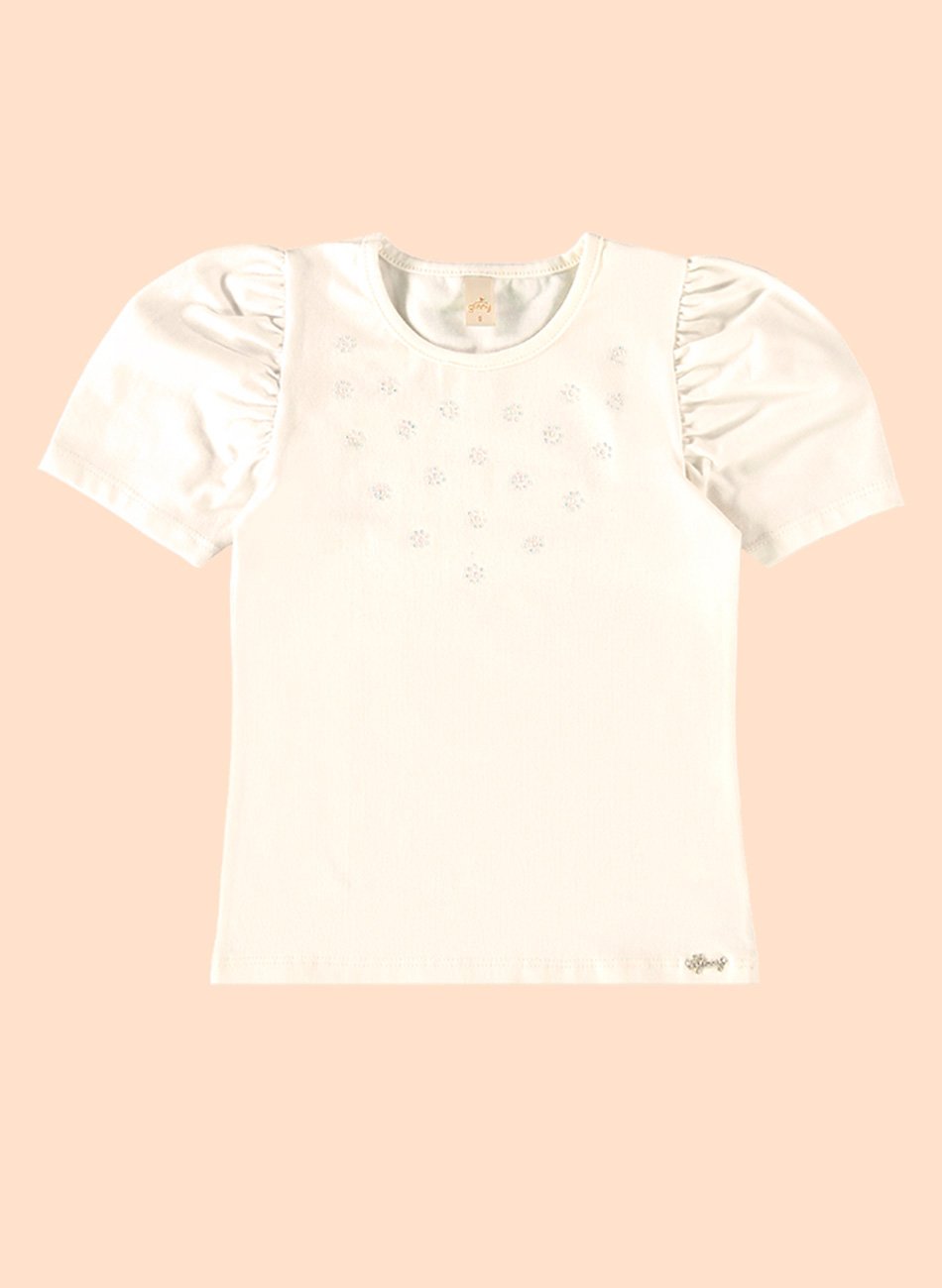 Além de ser elegante, esta blusa é extremamente versátil. Pode ser combinada facilmente com saias, shorts ou calças, adaptando-se a diferentes ocasiões, seja para um passeio casual ou um evento especial. O aplique de strass garante que sua filha se destaque com estilo onde quer que vá.
