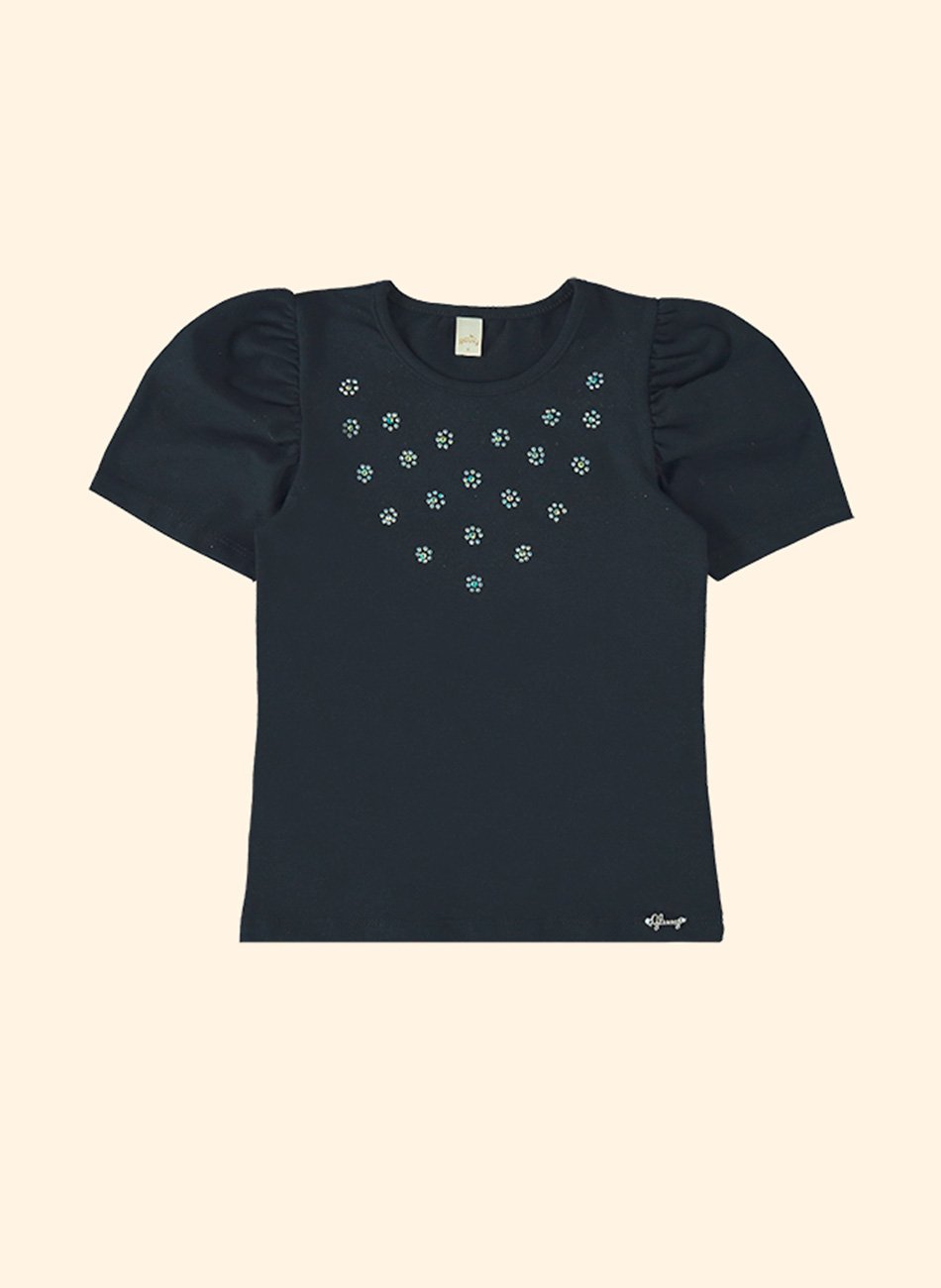 Além de ser elegante, esta blusa é extremamente versátil. Pode ser combinada facilmente com saias, shorts ou calças, adaptando-se a diferentes ocasiões, seja para um passeio casual ou um evento especial. O aplique de strass garante que sua filha se destaque com estilo onde quer que vá.