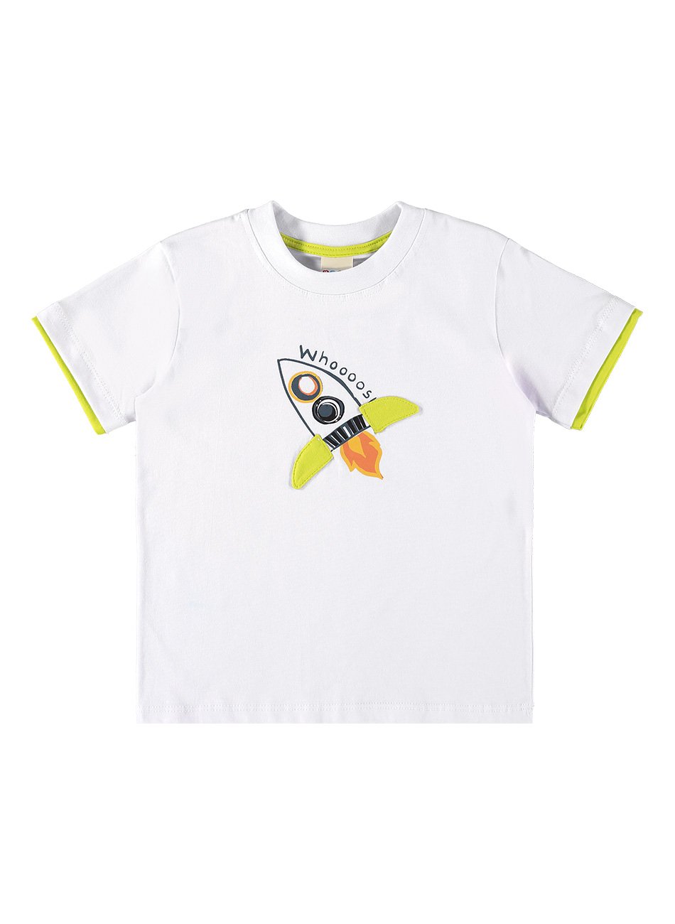 A grande estrela desta camiseta é a estampa de foguete na parte frontal. Com um design criativo e cores vibrantes, a estampa capta o espírito aventureiro dos meninos, inspirando-os a explorar o universo da imaginação. O foguete, símbolo de viagens e descobertas, torna esta peça única e divertida, garantindo que seu filho se destaque com estilo.