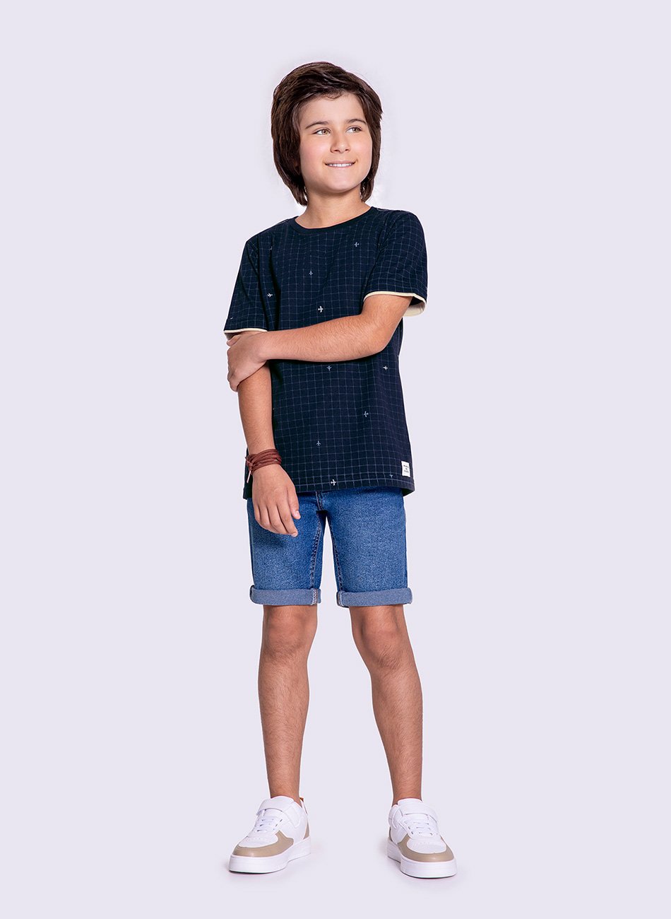 Combine a camiseta com bermuda jeans e tênis para um visual despojado, ou aposte em outras combinações para criar diferentes estilos. Seja para brincar, passear ou viver novas aventuras, essa peça é sinônimo de conforto e praticidade, sem abrir mão do charme e da modernidade. Ofereça ao seu filho uma peça que une design e funcionalidade com qualidade excepcional.
