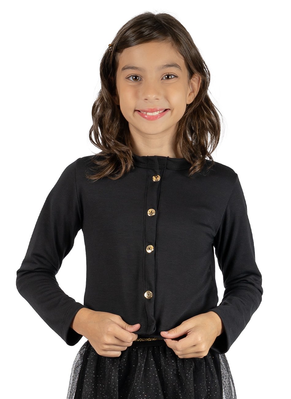 Sua versatilidade permite que seja usado de várias maneiras: fechado como blusa para um visual mais clássico ou sobre vestidos para um toque de elegância descontraída. Complemente seu guarda-roupa da sua filha com esta peça essencial que combina conforto e estilo em igual medida.