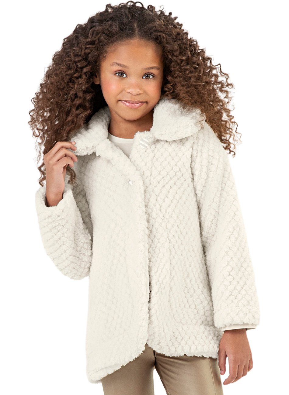 Casaco em Pelo Infantil Menina - Colorittá é a peça perfeita para manter sua pequena aquecida com muito estilo e sofisticação. Feito com tecido macio e aconchegante, esse casaco proporciona conforto térmico ideal para os dias mais frios, garantindo proteção sem abrir mão da elegância.