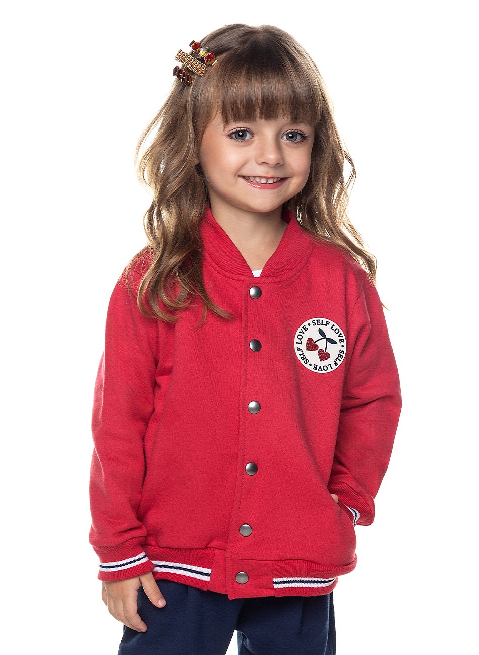 Casaco em moletom felpado 100% Algodão. Detalhes em ribana, gola alta, detalhe na estampa em glitter.
