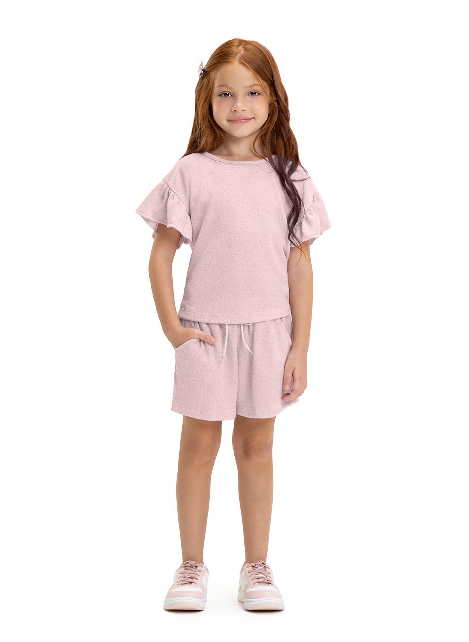 Conjunto Blusa e Shorts Básico Malha Trabalhada Infantil Menina - Have Fun é a combinação perfeita de estilo e praticidade para as meninas que adoram estar na moda sem abrir mão do conforto. A blusa, confeccionada em malha trabalhada, se destaca pelas mangas com babado, que adicionam um toque delicado e feminino ao visual. O detalhe de cadarço na blusa oferece um ajuste personalizado e um charme adicional. O shorts, também em malha trabalhada, conta com bolsos laterais funcionais, proporcionando praticidade para guardar pequenos itens e deixando o look ainda mais moderno. Ideal para o dia a dia, este conjunto é perfeito para passeios e momentos de diversão, garantindo que sua filha esteja sempre confortável e estilosa.