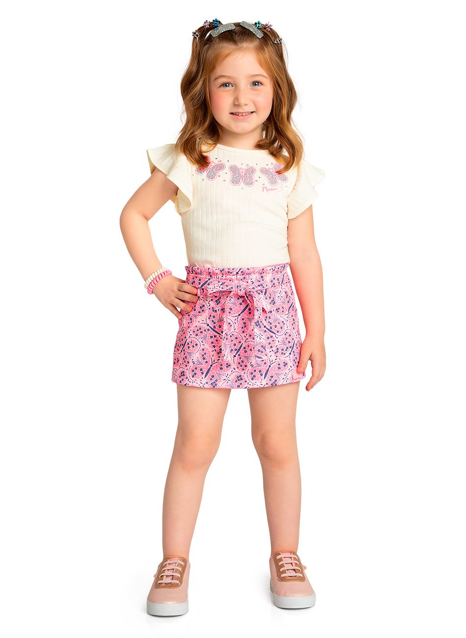 Os babadinhos nas mangas dão um ar romântico e fofo à blusa, deixando sua filha ainda mais encantadora. O short saia em cotton é uma peça versátil que combina a praticidade dos shorts com a elegância das saias. O detalhe do laço na parte frontal do short saia adiciona um charme especial, completando o look com graça e estilo.