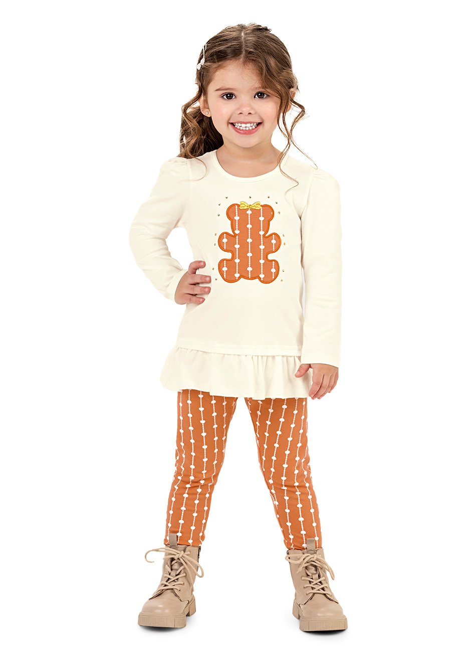 Conjunto Infantil Blusa em Cotton com Strass e Bordado + Legging Estampada Glinny. Feito com materiais de alta qualidade, este conjunto combina conforto e sofisticação para acompanhar as pequenas em qualquer ocasião.