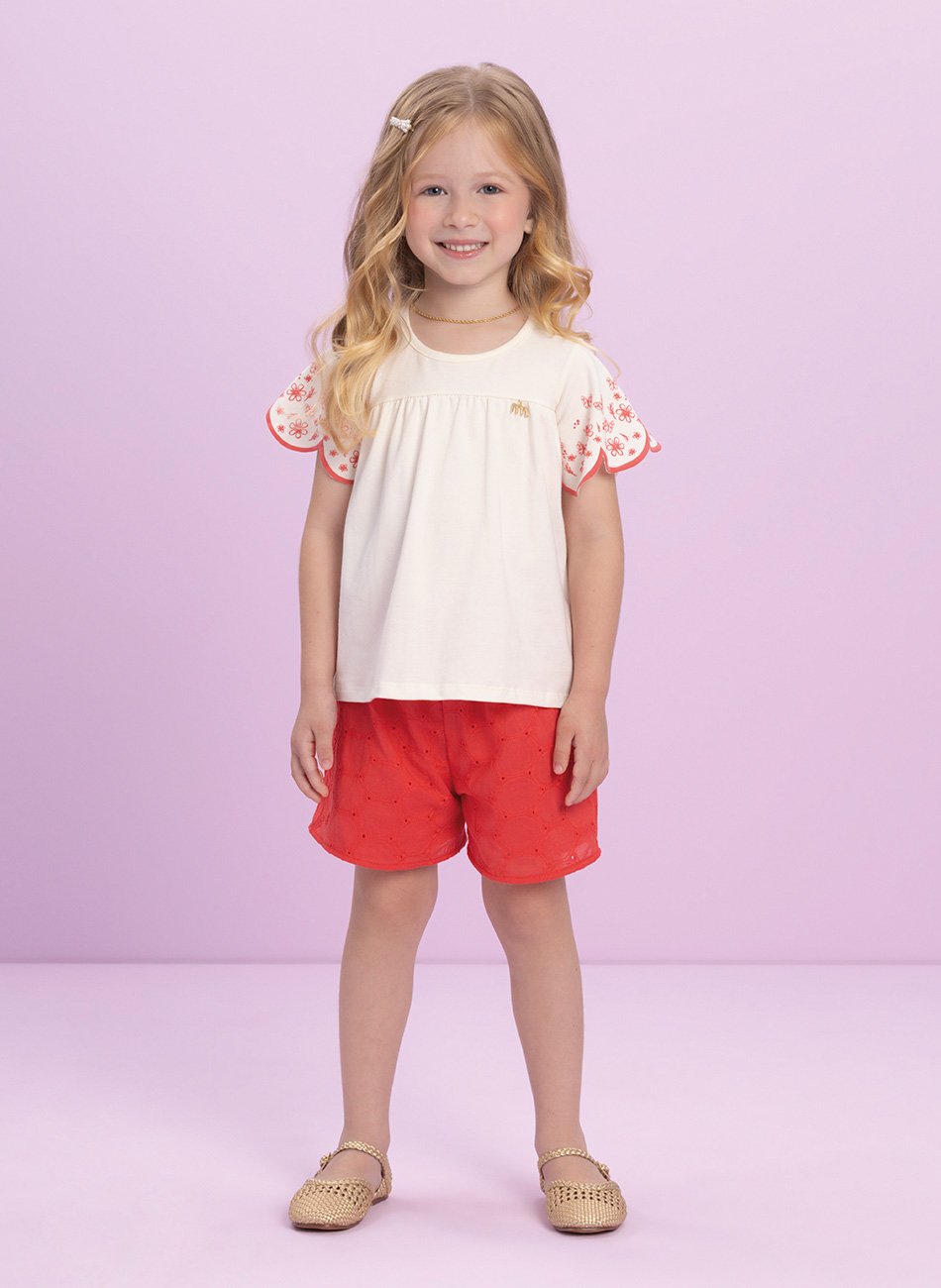 O shorts forrado completa o conjunto com conforto e segurança. Possui cós macio, tecido confortável e uma modelagem prática para o dia a dia. A peça garante que as meninas estejam sempre prontas para brincar com liberdade e estilo.
