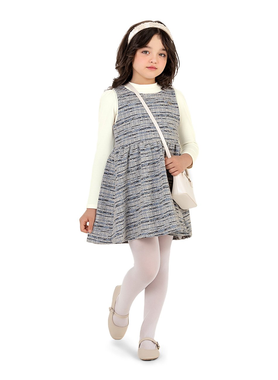 Conjunto Blusa Gola Alta + Vestido Tweed Sparks Infantil Menina - Glinny é uma combinação perfeita de elegância e sofisticação, projetada para meninas que adoram um look clássico com um toque moderno. O vestido de tweed oferece um acabamento de alta qualidade, com uma textura refinada e um design atemporal, ideal para ocasiões especiais ou passeios. O detalhe do tweed sparks no vestido confere um charme único, tornando a peça cheia de personalidade e estilo.
