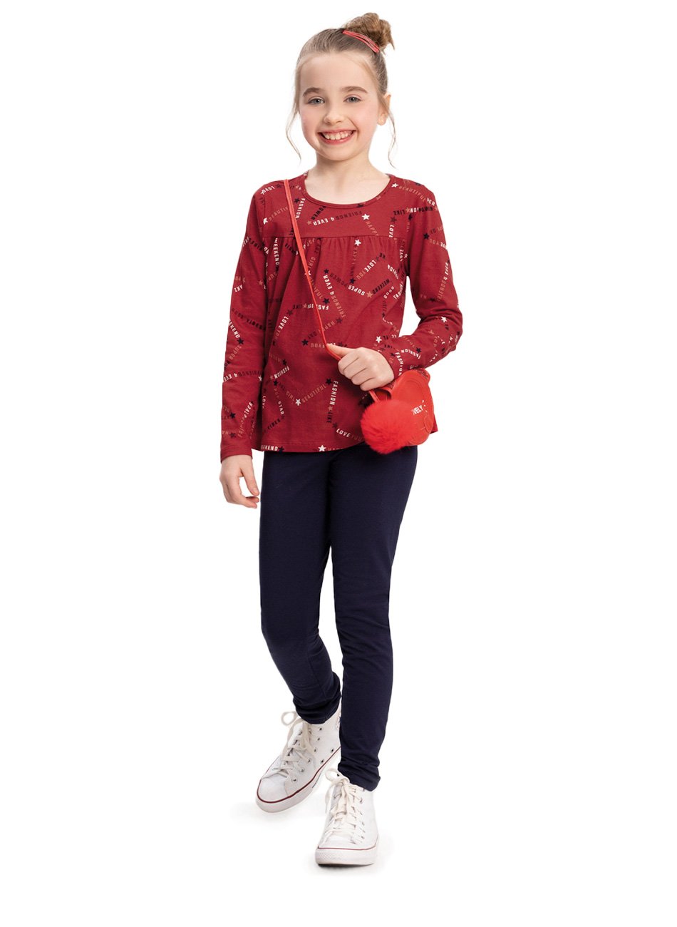 A legging é confeccionada em tecido flexível e durável, proporcionando liberdade de movimento e ajuste perfeito ao corpo. Este conjunto foi desenvolvido para oferecer praticidade no dia a dia das crianças e facilidade na combinação com outros itens do guarda-roupa.