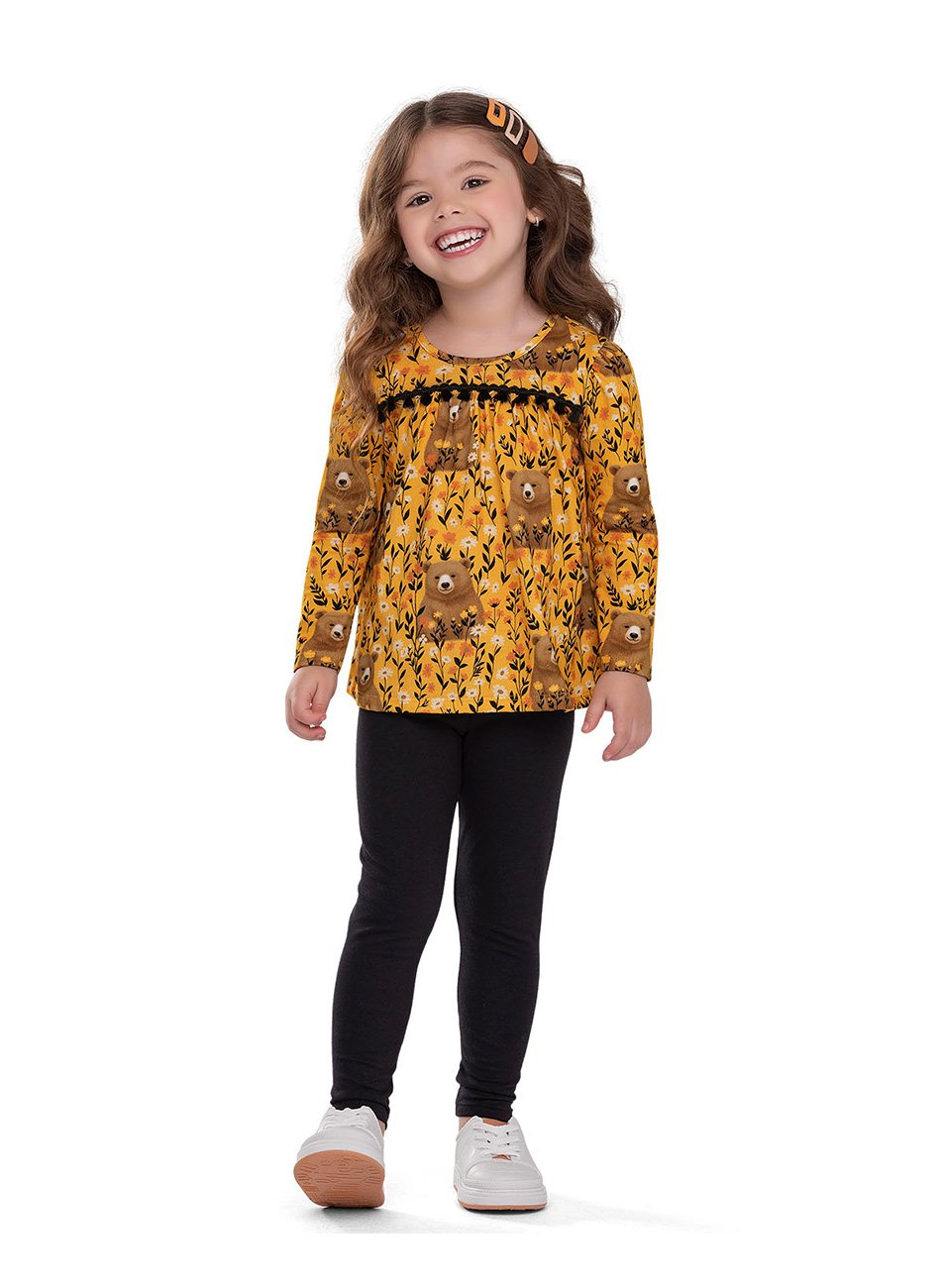 Conjunto "Bear Garden": Blusa Bata com Franjas e Legging Cotton 8