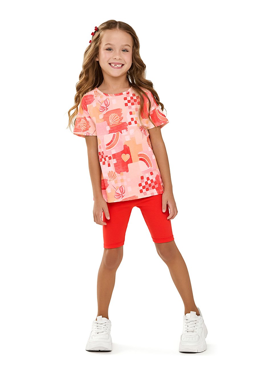 Conjunto Infantil Feminino Elian é ideal para meninas que adoram conforto e estilo! Composto por uma blusa de meia malha macia e respirável e um shorts ciclista ajustado, essa combinação é perfeita para passeios, brincadeiras e momentos especiais.