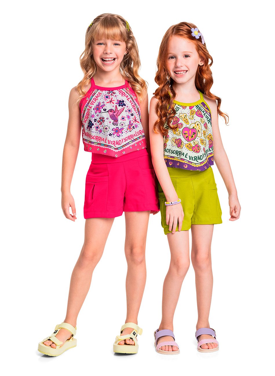 O shorts, confeccionado em moletinho sem felpa, é extremamente confortável e leve, ideal para acompanhar as meninas em suas atividades diárias, seja para brincar, passear ou relaxar em casa. O design do conjunto combina cores harmoniosas, criando um look charmoso e alegre para o verão. A coleção de alto-verão da Kely Kety traz qualidade e estilo em uma única peça, oferecendo versatilidade para compor diversos looks. Além disso, a combinação de tecidos escolhida garante a respirabilidade ideal para os dias mais quentes, sem perder o toque de moda que as meninas adoram.