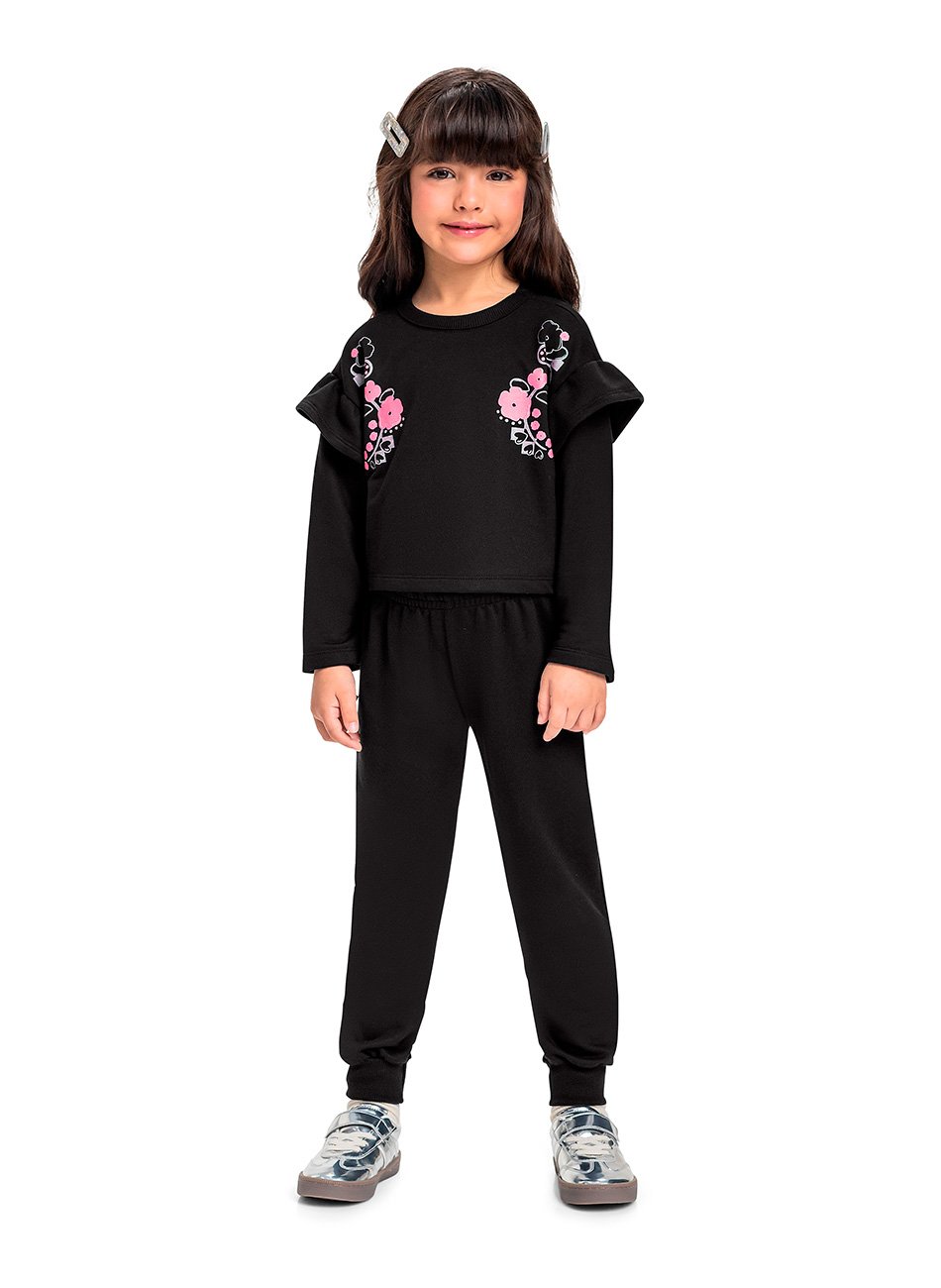 A calça em moletom sem felpa proporciona um caimento leve e confortável, ideal para o dia a dia ativo das crianças. Sua modelagem ajustada permite liberdade de movimentos, tornando o conjunto perfeito para brincadeiras, passeios ou momentos casuais.