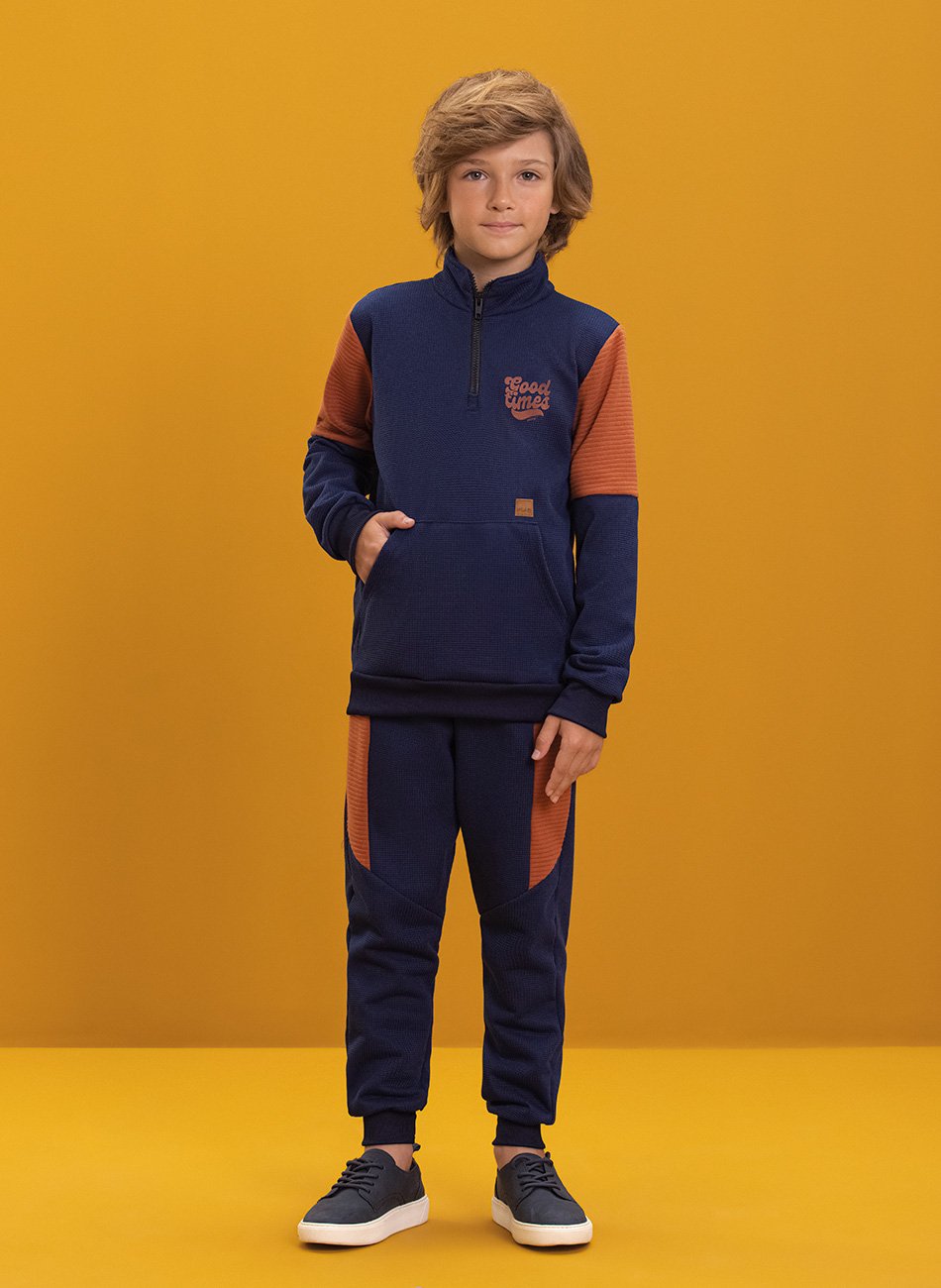 Conjunto Infantil Blusão e Calça em Malha Tricô Felpado para Meninos da Ioluigi, uma combinação perfeita de conforto e estilo para os dias mais frios. Este conjunto é ideal para o uso diário, proporcionando aconchego e praticidade ao guarda-roupa infantil.