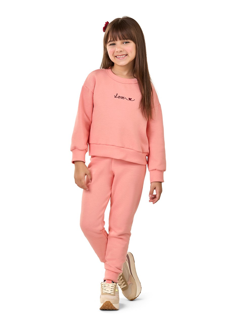O moletom felpado utilizado é macio e aconchegante, ideal para os dias mais frios, garantindo que sua pequena fique protegida do vento e das baixas temperaturas. O design do conjunto é pensado para oferecer praticidade e liberdade de movimento, permitindo que sua menina brinque e se divirta sem restrições.