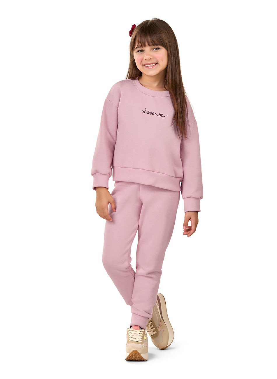 Conjunto Blusão e Calça Moletom Felpado Infantil Menina Elian é a escolha ideal para manter sua menina aquecida e estilosa em qualquer ocasião. Confeccionado com material de moletom felpado de alta qualidade, este conjunto garante conforto, durabilidade e um ajuste perfeito. O blusão apresenta um bordado encantador na parte frontal, adicionando um toque especial e delicado ao design.