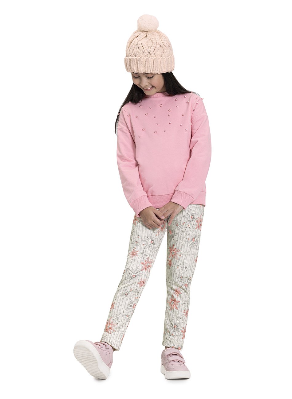 O Blusão em molecotton possui felpa interna e boa elasticidade sem perder a maciez. Possui detalhes com alique de pérolas na parte frontal. Gola e barra em ribana.