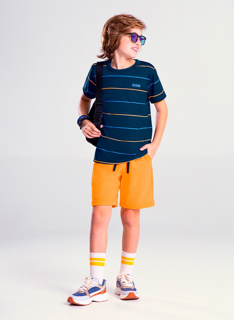 Descubra o Conjunto Boca Grande, perfeito para meninos que buscam conforto e estilo. A camiseta em meia malha listrada oferece um visual clássico e descontraído, ideal para o dia a dia. Destaque para o detalhe listrado que adiciona um toque de modernidade. A bermuda em moletom sem felpa apresenta um cadarço para ajuste personalizado e bolsos funcionais na frente, garantindo praticidade e estilo. Confortável e versátil, este conjunto é ideal para atividades ao ar livre, passeios e momentos de lazer. Uma escolha essencial para o guarda-roupa dos pequenos fashionistas.