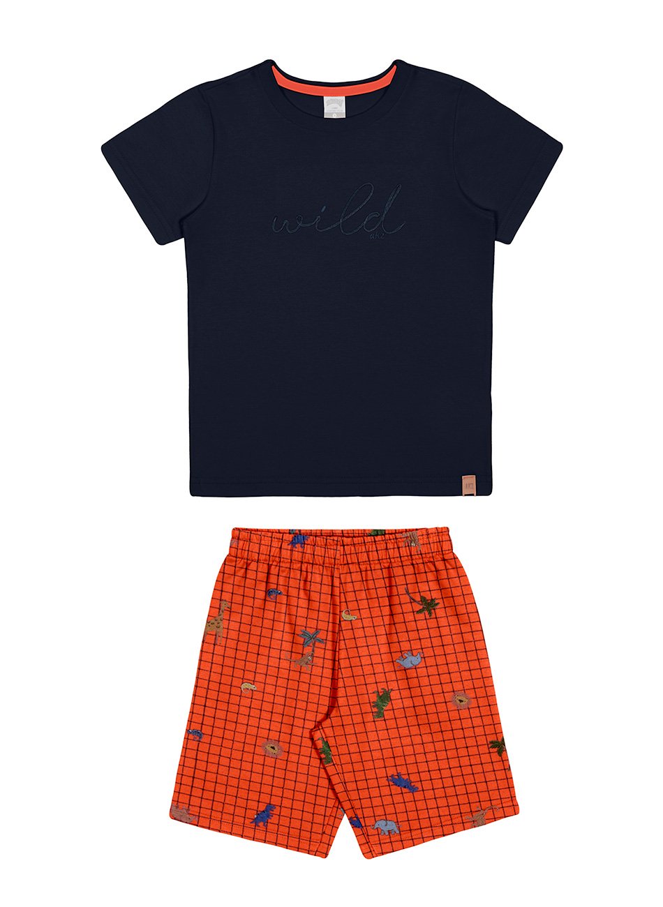 O conjunto infantil Alakazoo foi projetado para garantir conforto, estilo e liberdade em qualquer aventura. A camiseta de mangas curtas é confeccionada em meia malha penteada que passa por um processo de "lixamento", conferindo ao tecido um toque aveludado, semelhante à pele de pêssego, além de uma leve elasticidade que não encolhe. O bordado frontal com a palavra "Selvagem" adiciona um toque único e divertido ao visual, tornando a peça ainda mais especial.