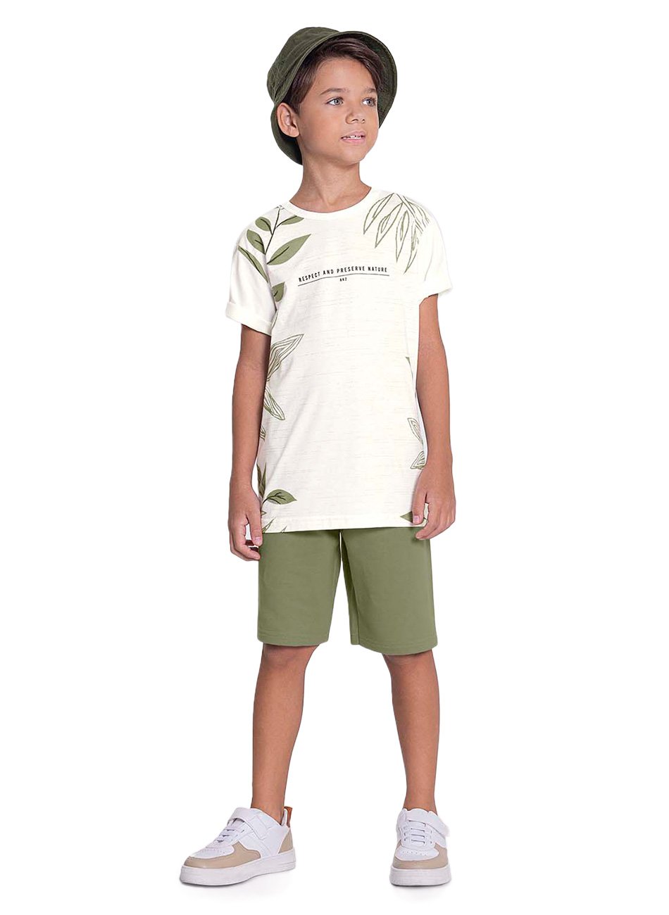 Conjunto Camiseta e Bermuda Infantil Menino - Alakazoo foi desenvolvido para oferecer conforto e estilo para os pequenos em qualquer ocasião. A camiseta possui uma estampa rotativa, que traz um visual dinâmico e moderno, perfeito para meninos que adoram se destacar com roupas divertidas. A estampa, em cores vibrantes e desenhos exclusivos, cobre a peça de forma homogênea, criando um efeito visual único e cativante.