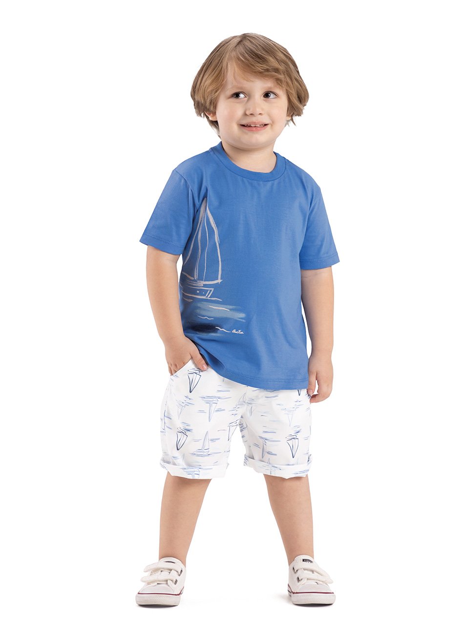 Conjunto Camiseta e Bermuda Sarja Menino da Have Fun traz uma combinação perfeita de estilo e conforto para meninos ativos. A bermuda sarja conta com uma estampa rotativa moderna, enquanto a camiseta apresenta uma estampa frontal com um desenho de barco, criando um visual descontraído e cheio de personalidade.