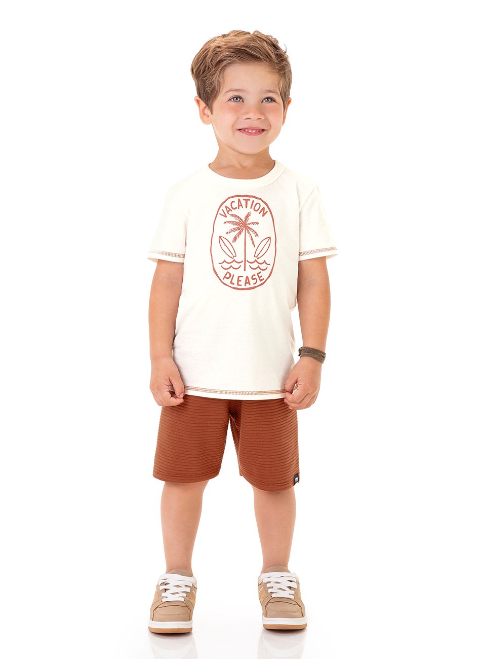 Conjunto Camiseta em Meia Malha e Bermuda Infantil Menino da Marlan. Com uma estampa puff exclusiva que adiciona um toque de personalidade, este conjunto é perfeito para os dias ensolarados de verão. A camiseta em meia malha oferece conforto e respirabilidade, enquanto a bermuda leve proporciona liberdade de movimento para todas as aventuras.