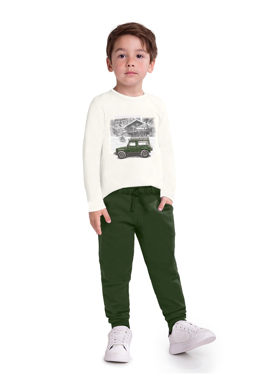 Conjunto Infantil Camiseta em Meia Malha e Calça em Moletom para Meninos da Milon, uma combinação perfeita de conforto e estilo para o dia a dia e ocasiões especiais. Este conjunto é ideal para garantir que seu filho esteja sempre bem-vestido e confortável, seja em casa, na escola ou em passeios.