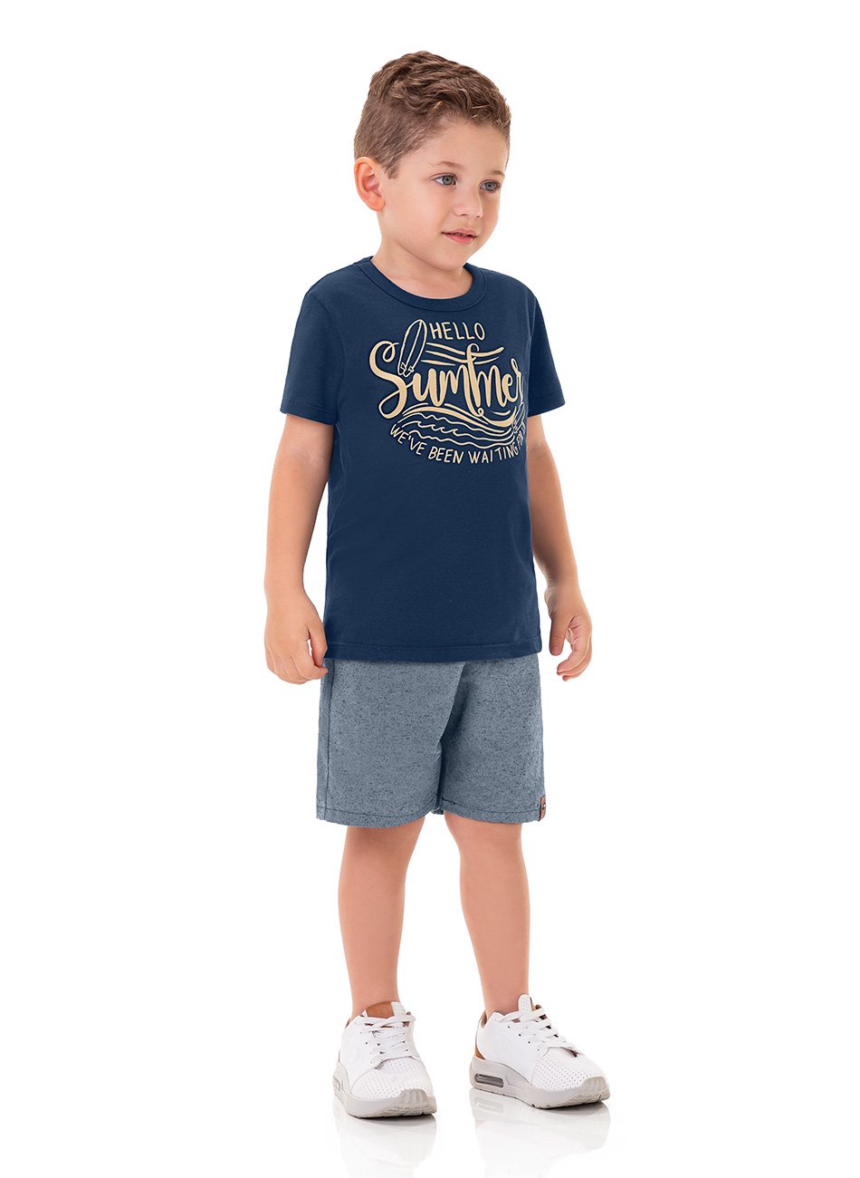 Conjunto Camiseta Meia Malha e Bermuda em Sarja Infantil Menino da Marlan é a escolha perfeita para proporcionar estilo e conforto aos meninos em todas as ocasiões. Este conjunto combina uma camiseta de meia malha com uma estampa puff moderna e uma bermuda de sarja com detalhes práticos e funcionais.