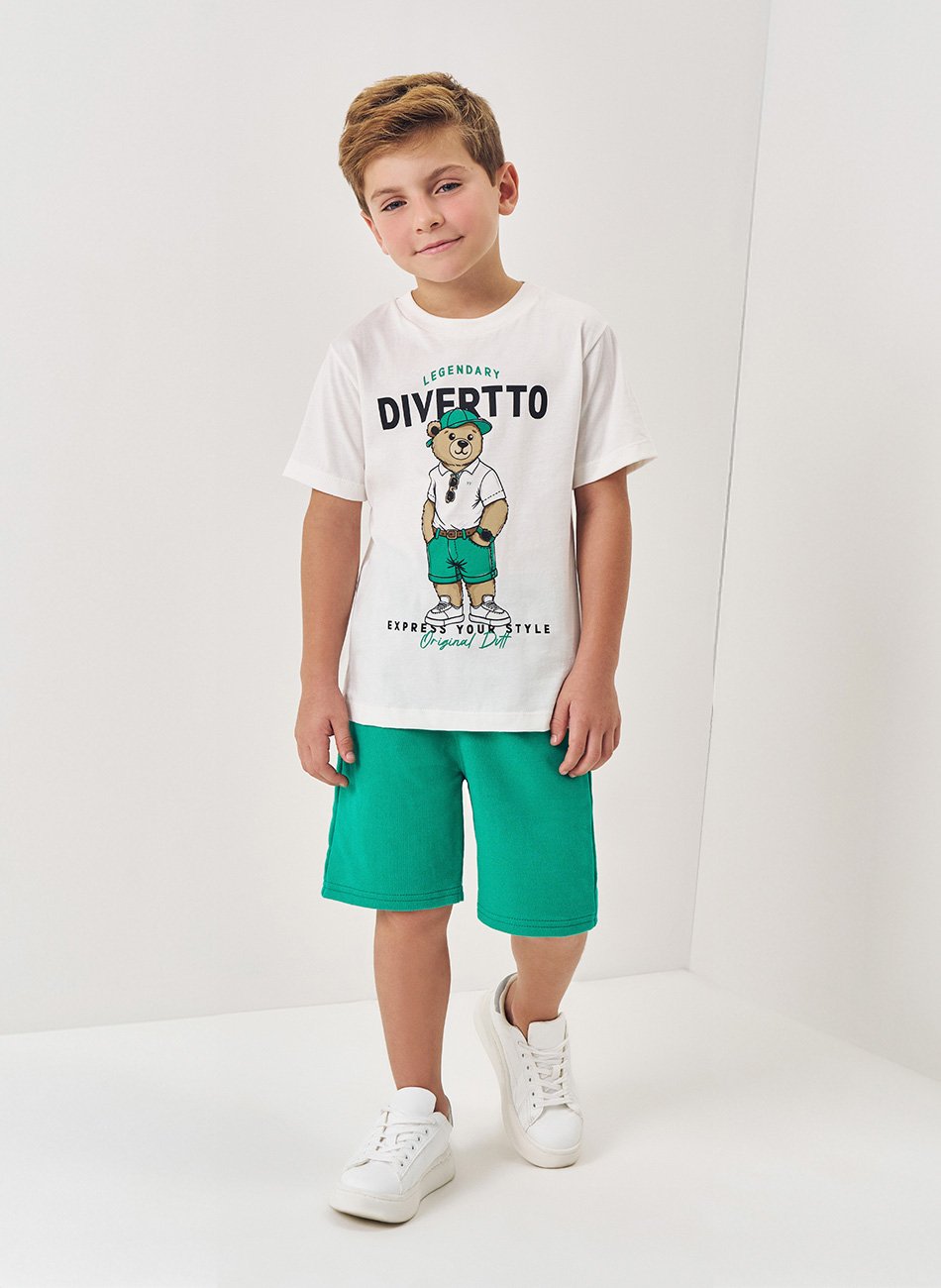 Conjunto Infantil Masculino da marca Divertto é ideal para meninos que gostam de se vestir com conforto e estilo em qualquer ocasião. Composto por uma camiseta em meia malha e uma bermuda em moletom sem felpa, esse conjunto é perfeito para o dia a dia, passeios ou momentos de lazer.