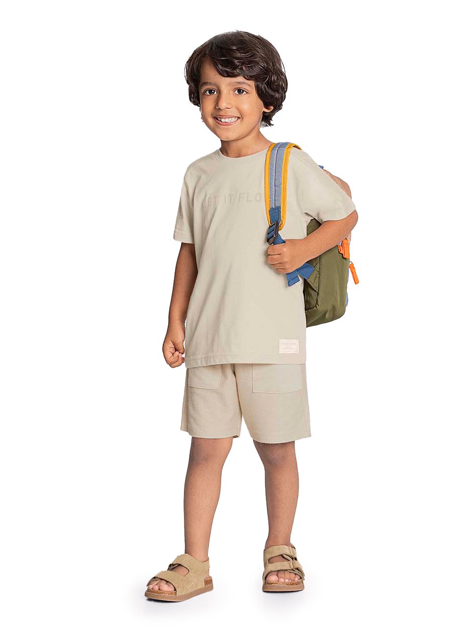 bermuda em moletom Lino Craft complementa o conjunto com um tecido resistente e confortável. Ideal para as atividades do dia a dia, a bermuda oferece elasticidade e um caimento perfeito, permitindo que os pequenos explorem o mundo à vontade.