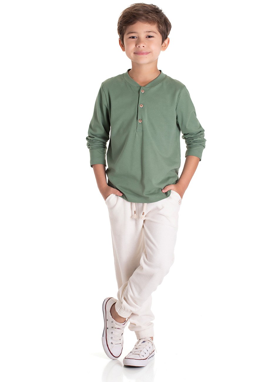 A camiseta é confeccionada em meia malha de alta qualidade, oferecendo um toque macio e respirável. Seu detalhe com botões frontais traz um charme extra ao visual, tornando-a perfeita para compor looks modernos e confortáveis. Já a calça jogger é feita em moletinho, um tecido aconchegante ideal para os dias mais frescos. O cadarço permite um ajuste perfeito, enquanto os bolsos laterais adicionam funcionalidade e estilo ao conjunto.