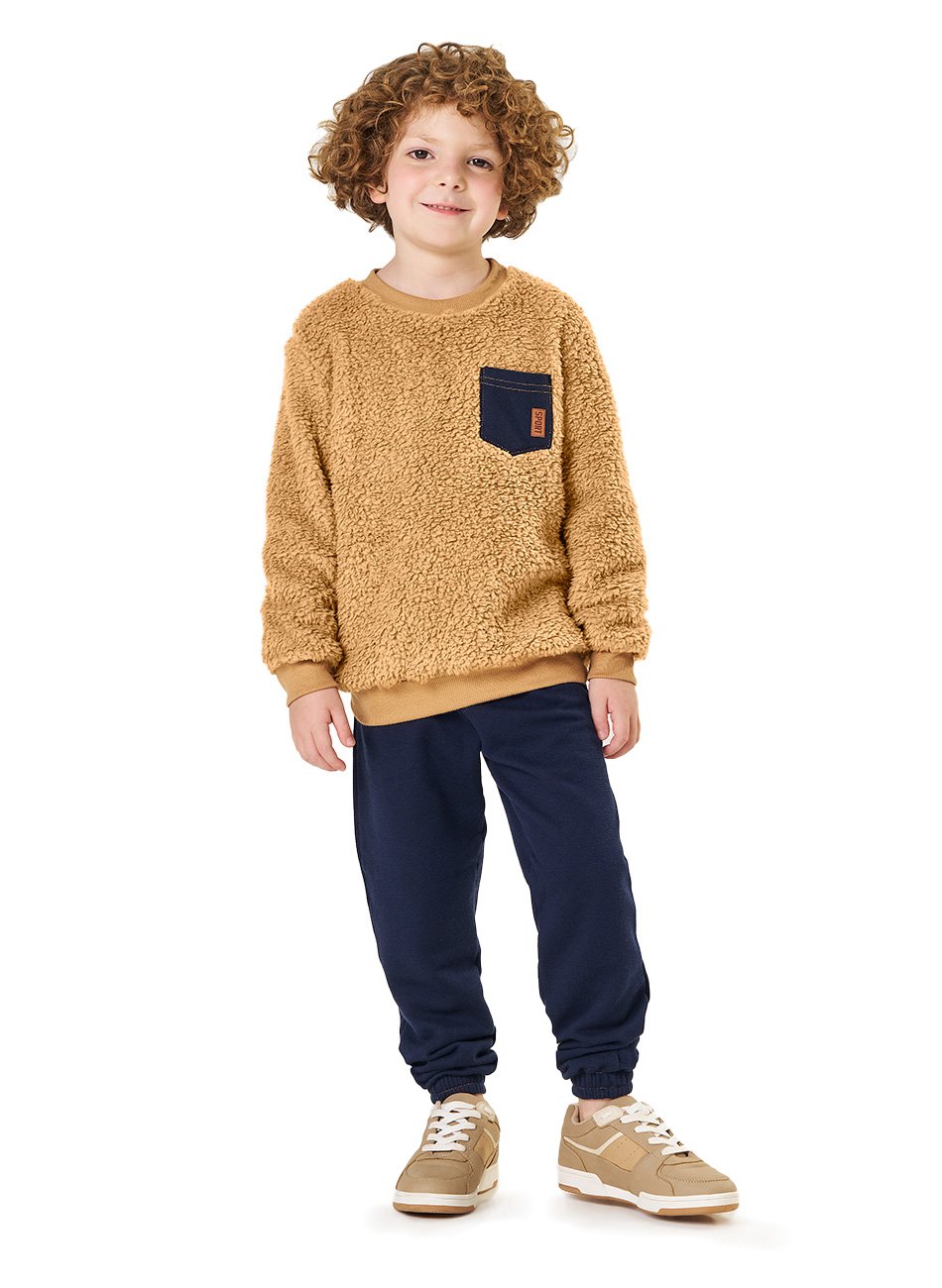 A calça, feita de moletom felpado, proporciona conforto térmico e liberdade de movimento, permitindo que as crianças brinquem e se movimentem com facilidade. O tecido interno felpado é especialmente aconchegante, garantindo proteção nos dias mais gelados.