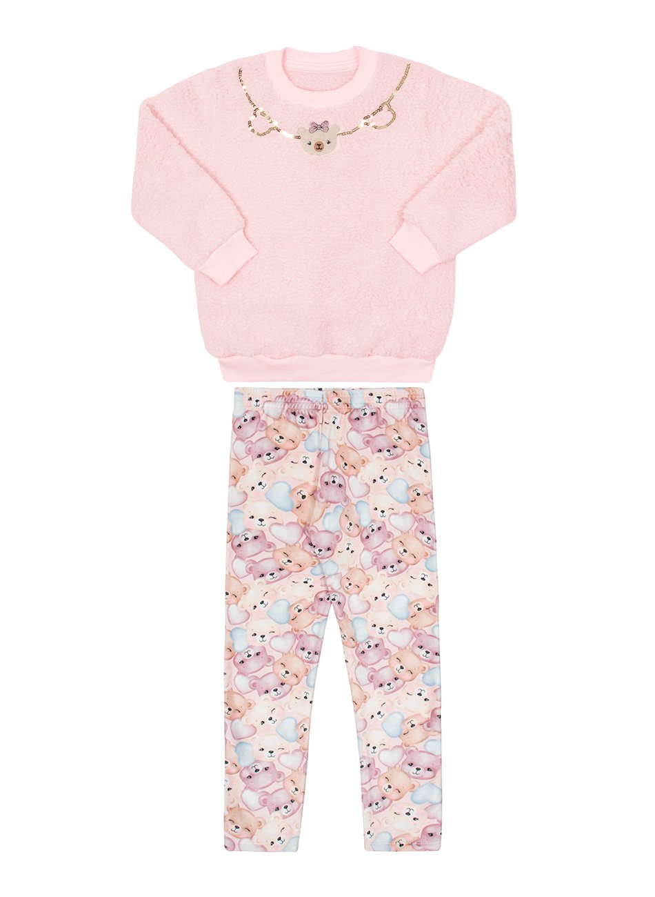 A legging, confeccionada em tecido flexível e resistente, apresenta uma estampa rotativa moderna e divertida, que complementa o casaco de forma harmônica. Juntos, esses itens formam um conjunto versátil que pode ser usado em passeios, eventos escolares ou até mesmo em momentos de lazer.