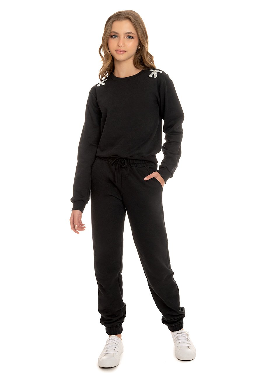 Conjunto Casaco e Calça Moletom Infantil Menina By Gus é a escolha ideal para manter sua menina aquecida e estilosa em qualquer ocasião. Confeccionado com material de moletom de alta qualidade, este conjunto garante conforto, durabilidade e um ajuste perfeito. O casaco apresenta um aplique em pedraria encantador, adicionando um toque de brilho e sofisticação ao design. A calça possui bolsos práticos, oferecendo maior conveniência, e um detalhe de cadarço que confere um charme adicional.