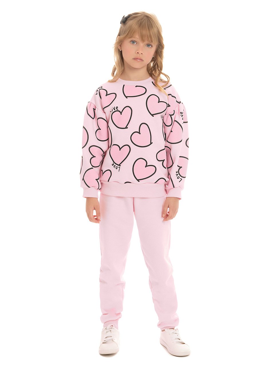 O moletom utilizado é macio e aconchegante, ideal para os dias mais frios, garantindo que sua pequena fique protegida do vento e das baixas temperaturas. O design do conjunto é pensado para oferecer praticidade e liberdade de movimento, permitindo que sua menina brinque e se divirta sem restrições.