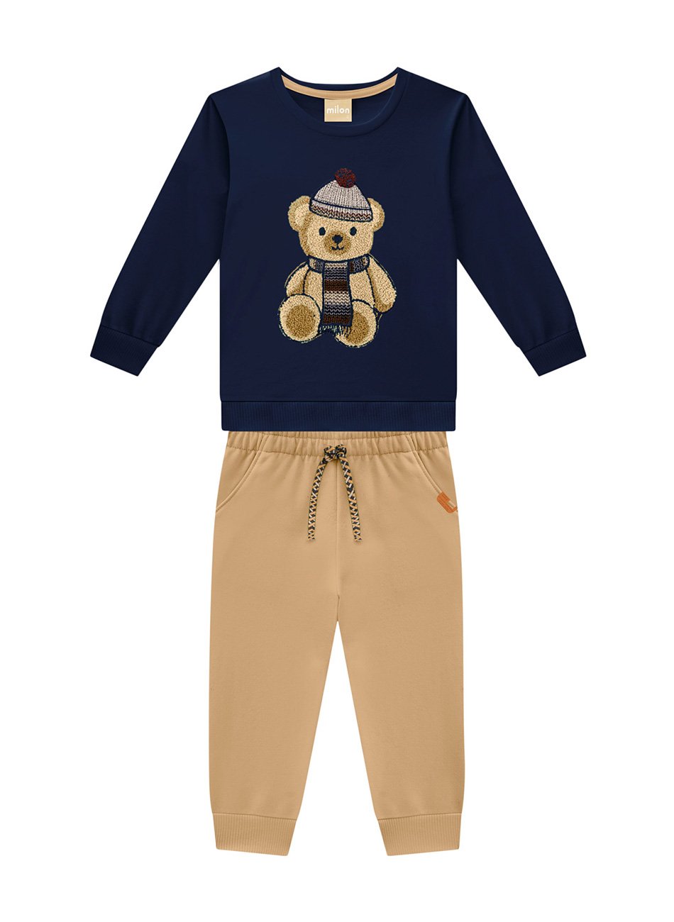 A calça em moletom peluciado completa o conjunto com um ajuste confortável e flexível, permitindo liberdade de movimento para as atividades diárias da criança. Cada detalhe da calça e do casaco reflete a qualidade e o cuidado característicos da marca Milon, garantindo durabilidade e um ajuste perfeito para o seu filho.