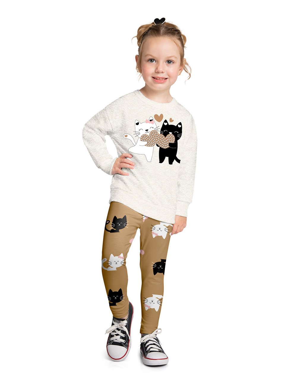 A legging, em cotton com 95% algodão e 5% elastano, apresenta uma estampa rotativa de gatinhos que reforça o tema lúdico do conjunto. O tecido com leve elasticidade se ajusta com suavidade ao corpo da menina, permitindo flexibilidade e conforto durante o uso. O cós com elástico embutido garante praticidade no vestir e firmeza na cintura sem apertar. Perfeito para passeios, encontros em família ou momentos de diversão com estilo. Com a qualidade Kyly e o charme dos pequenos brilhos, é uma peça que vai deixar os dias das pequenas ainda mais alegres e estilosos.