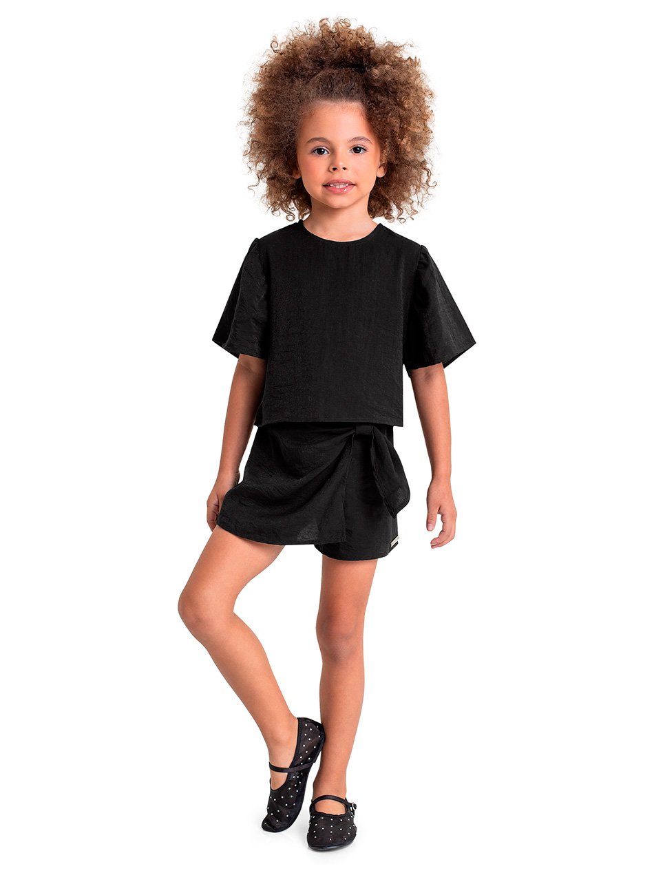 A short saia combina a praticidade dos shorts com a elegância das saias, permitindo que as meninas brinquem e se movimentem com liberdade sem perder o estilo. O detalhe do laço de amarração na parte da frente do short saia dá um charme especial à peça, completando o visual com graça.