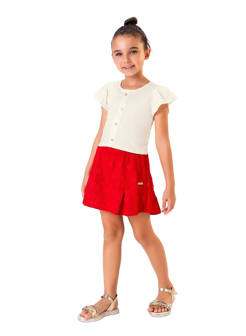 O shorts saia em tecido de coracao, combina a praticidade do shorts com o visual gracioso da saia.