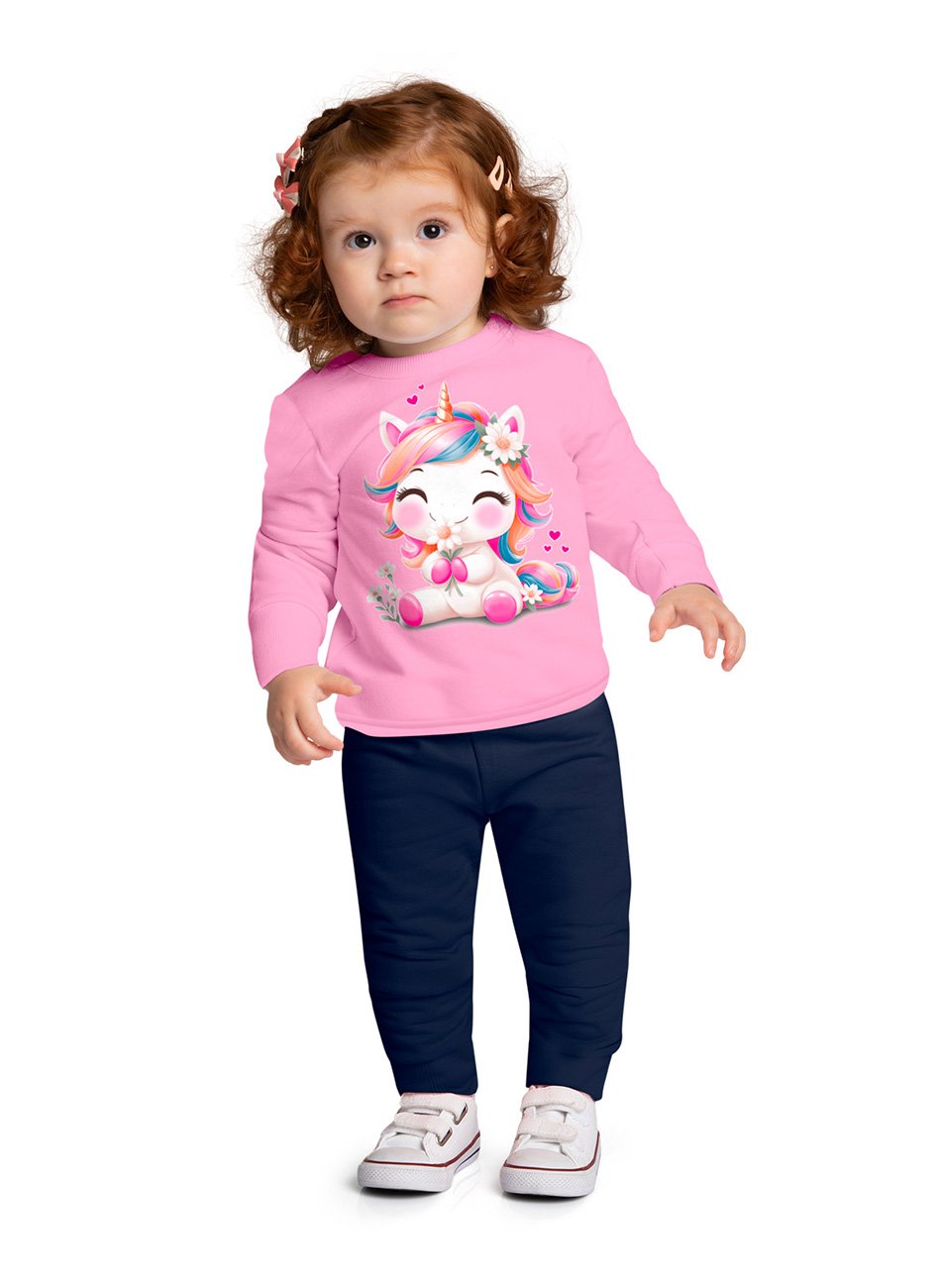 A calça em moletom peluciado completa o conjunto com um ajuste confortável e flexível, permitindo liberdade de movimento para as atividades diárias da criança. O tecido felpado proporciona um toque extra de aconchego, tornando a calça perfeita para os dias mais frios.