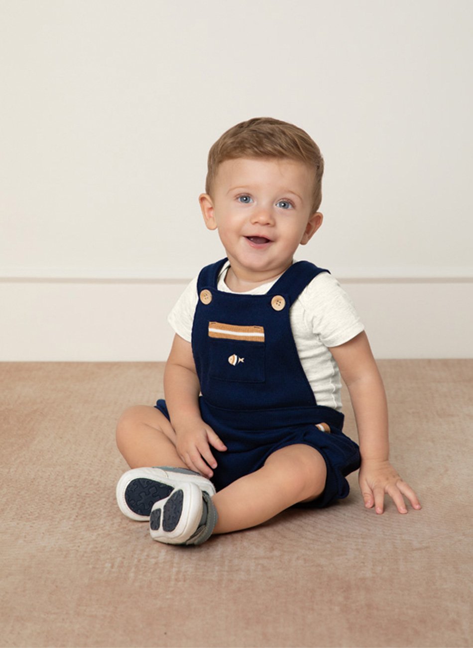 Jardineira com Body Bebê Menino Milon é um clássico que toda mãe vai adorar.