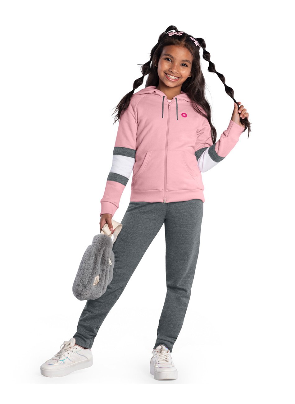 A jaqueta, confeccionada em moletom peluciado, oferece uma maciez e aconchego incomparáveis, graças à sua composição de 99% algodão e 1% poliéster. Um dos destaques desta peça é o aplique de coração em termocolante na lateral do peito, que adiciona um toque de charme e delicadeza. Além disso, a jaqueta possui capuz, zíper frontal e bolsos centralizados, proporcionando praticidade e funcionalidade para o dia a dia. As mangas longas com recortes em cores contrastantes na altura dos cotovelos conferem um visual moderno e estiloso. Os punhos das mangas e a barra da jaqueta com acabamento em molde garantem um ajuste confortável e seguro, perfeito para acompanhar as aventuras da sua pequena.