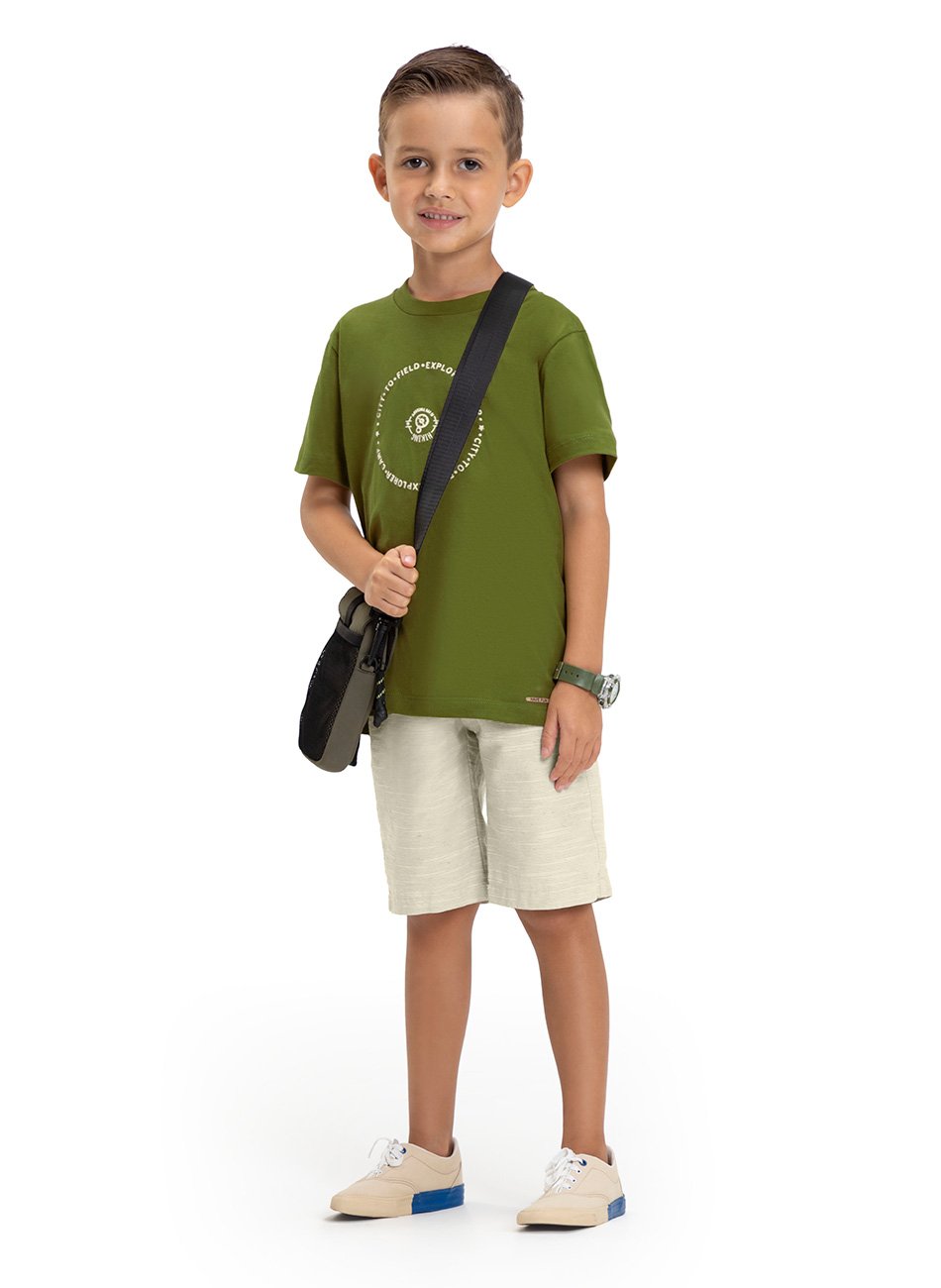 A bermuda é o complemento perfeito, trazendo não só estilo, mas também funcionalidades essenciais para o dia a dia das crianças. Com bolsos frontais e traseiros. O detalhe do botão no fecho da bermuda adiciona um toque sofisticado ao design, ao mesmo tempo que garante um ajuste seguro e confortável.