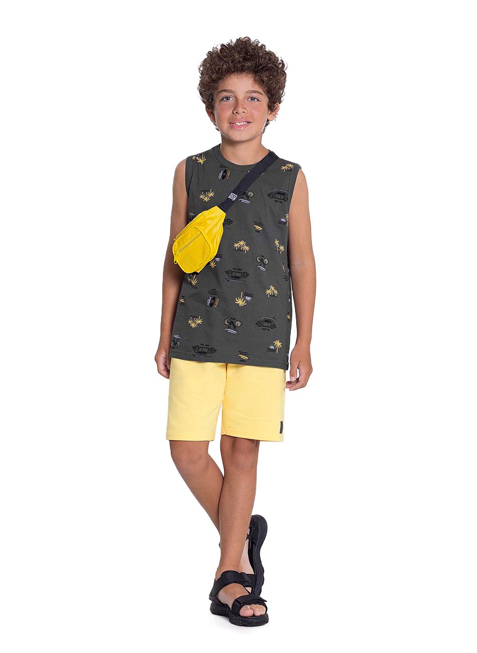 Conjunto Meia Malha Regata e Bermuda Infantil Menino - Alakazoo é a combinação perfeita de estilo e conforto para os dias mais quentes. A regata é confeccionada em meia malha macia e respirável, proporcionando leveza e frescor para que os meninos possam brincar com total liberdade. Com um design moderno e casual, é ideal tanto para momentos de lazer como para passeios em família, oferecendo praticidade e um toque descolado.