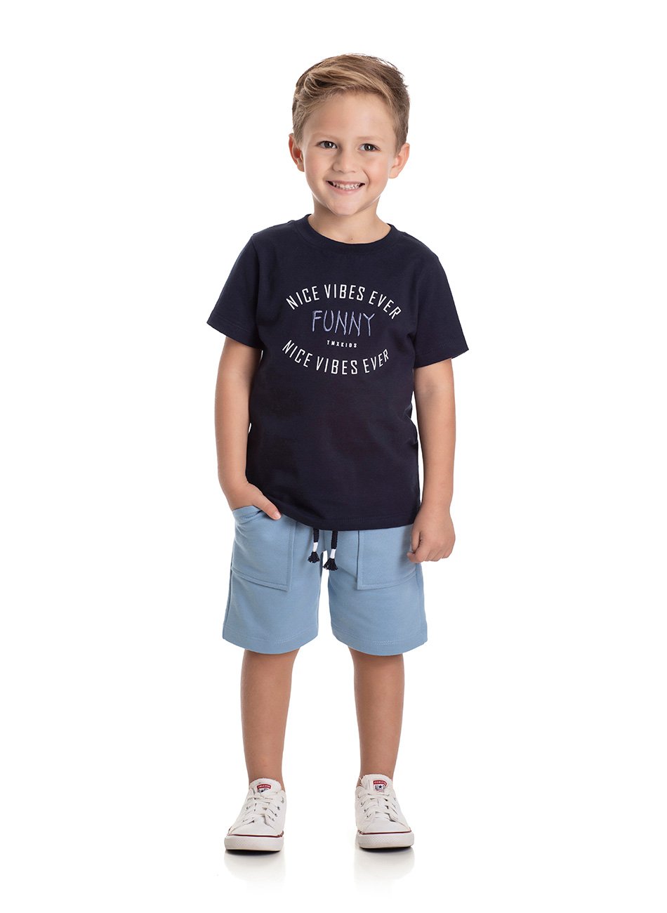 Composto por uma camiseta de meia malha penteada 100% algodão, o conjunto oferece um toque macio e respirável, ideal para a pele sensível das crianças. A camiseta apresenta uma estampa moderna com detalhes bordados, adicionando um toque exclusivo e divertido ao look. Já a bermuda é confeccionada em moletinho sem felpa, garantindo conforto em todos os movimentos. Além disso, possui bolsos práticos, permitindo que os pequenos guardem pequenos objetos e brinquem com total liberdade.