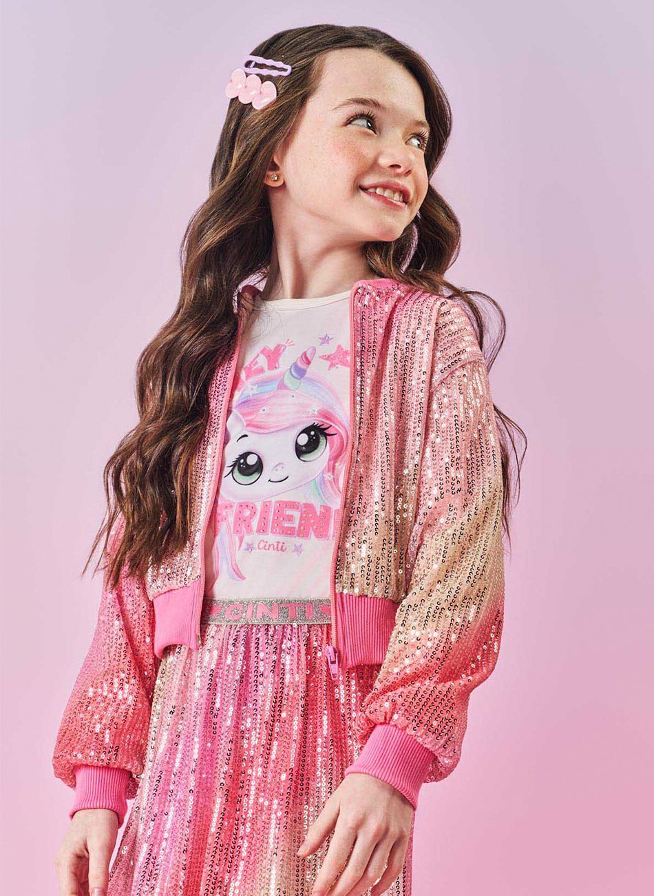 Jaqueta Bomber Boxy em Paetê Degradê Infantil Menina Cinti é a escolha ideal para garantir conforto, proteção e estilo em qualquer ocasião. Confeccionada com material de alta qualidade, esta jaqueta oferece durabilidade, maciez e um ajuste perfeito. O paetê degradê proporciona um visual moderno e sofisticado, adicionando um toque de brilho ao design.