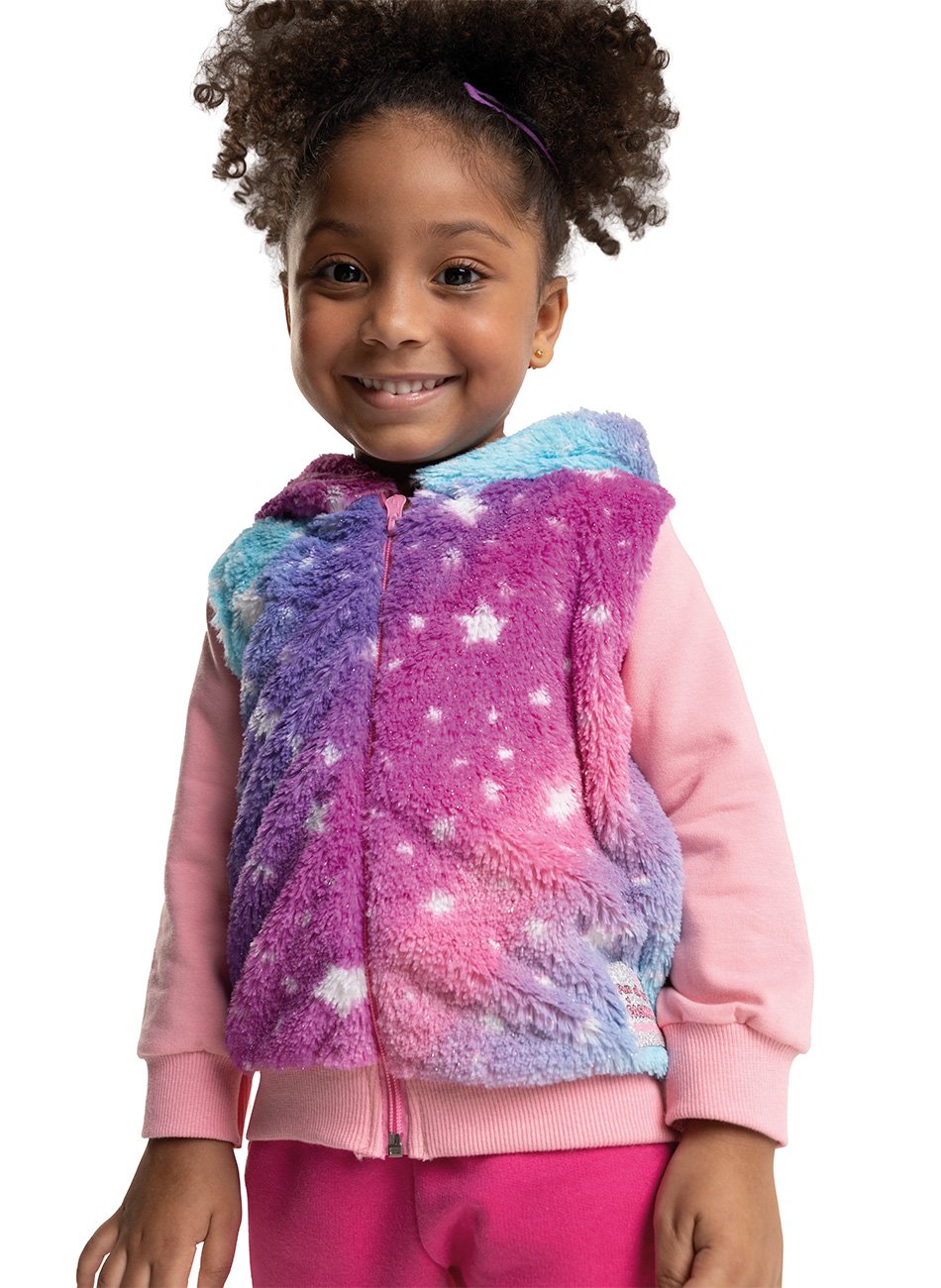 Jaqueta com capuz, em molecotton e pelinhos. Camada sobreposta em pelinhos (100% poliéster) e Molecotton (98% Algodão / 2% Elastano). Forro interno em 100% Algodão. Zíper e ribana nas mangas.