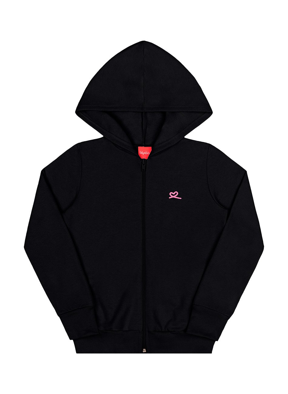 Seu design funcional inclui um capuz ajustado para maior proteção contra o vento, fechamento frontal por zíper de fácil manuseio e detalhes bordados que acrescentam um charme especial à peça. A modelagem versátil combina facilmente com calças, shorts ou saias, sendo ideal para a escola, passeios ou momentos de lazer.