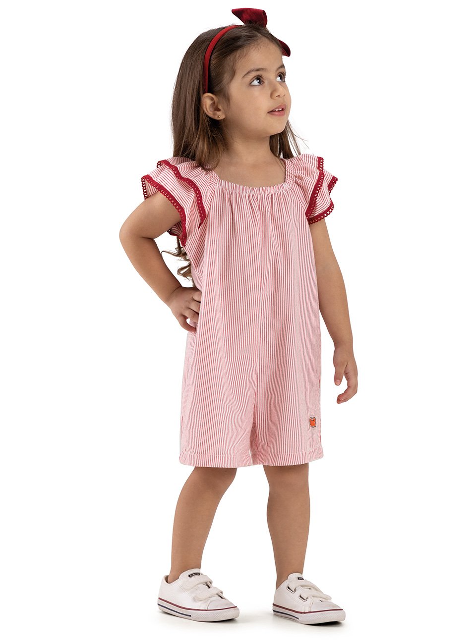 Macaquinho Navy Ana Ruga Infantil Menina - Have Fun é a escolha perfeita para as meninas que adoram um estilo charmoso e confortável. Com uma estampa listrada que remete ao estilo náutico, este macaquinho traz um toque moderno e cheio de energia para o visual da pequena.