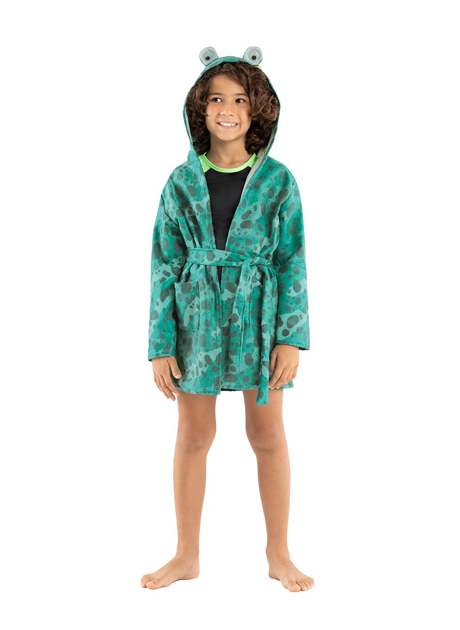 Com um aplique divertido na touca, o roupão transforma os momentos pós-banho em pura diversão. A estampa rotativa por toda a peça traz cores e ilustrações vibrantes, que encantam os pequenos e tornam o roupão muito mais do que uma simples peça de vestir – é também um acessório de entretenimento. O bordado detalhado adiciona um toque extra de qualidade, enquanto os bolsos frontais proporcionam praticidade.